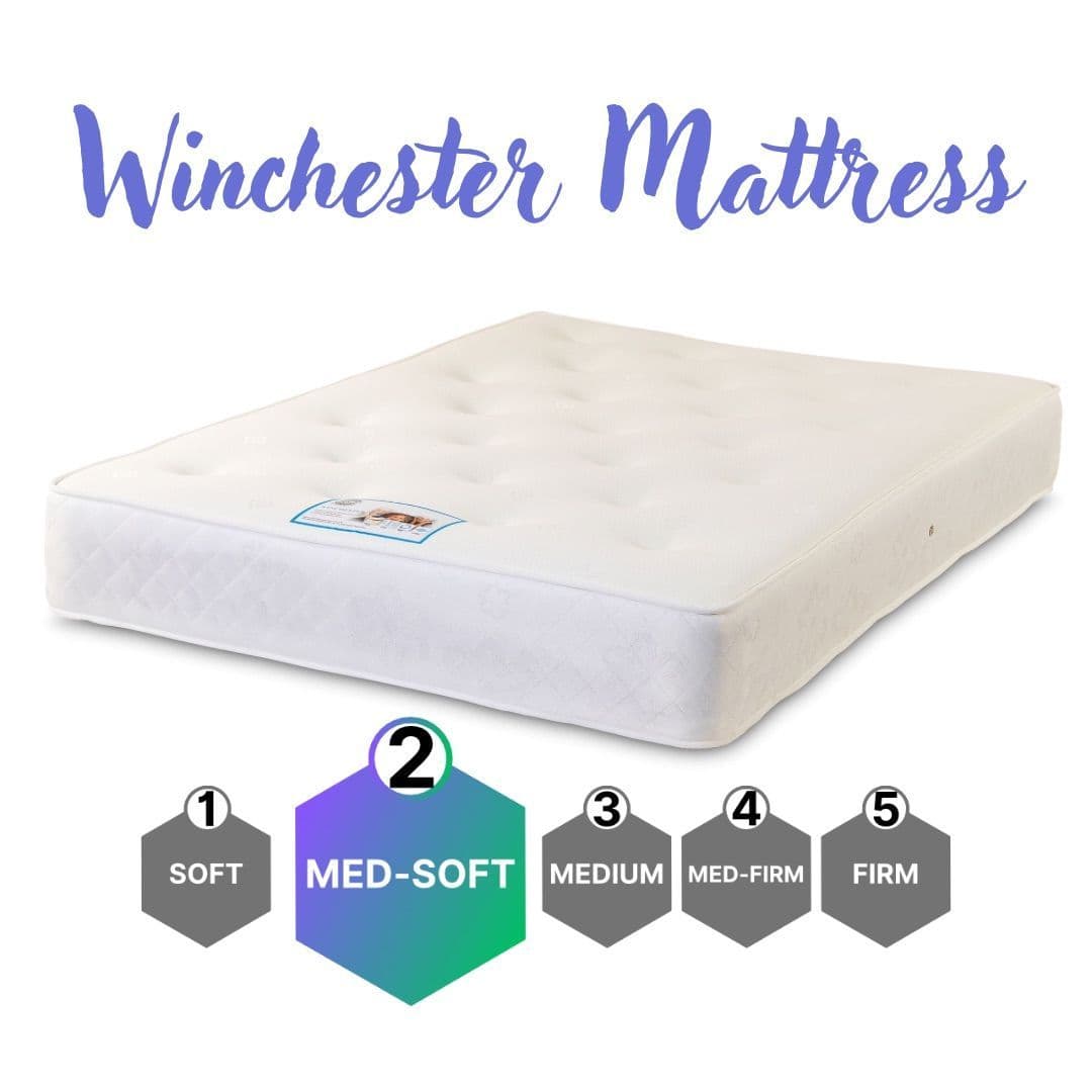 The Winchester is a very popular Memory Foam option. With its hybrid build made up of an Open Coil sprung frame, packed out with quality comfort fillings and topped with a Luxurious inch deep layer of Memory Foam. For those looking for that cloud soft sink into the mattress feeling.